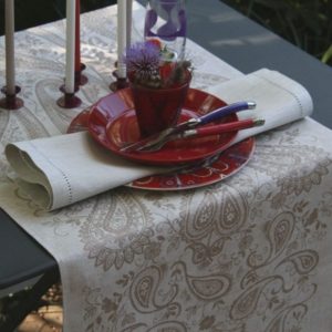 Jacquard Tischläufer 100% Leinen PAISLEY mit Hohlsaum von Ju-Lein