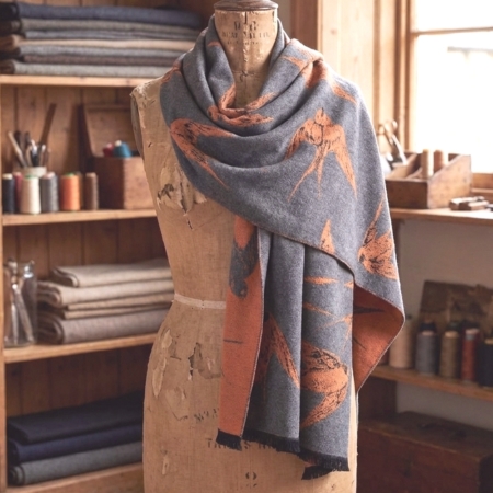 Warmes Schultertuch Damenschal grau mit Vogelprint