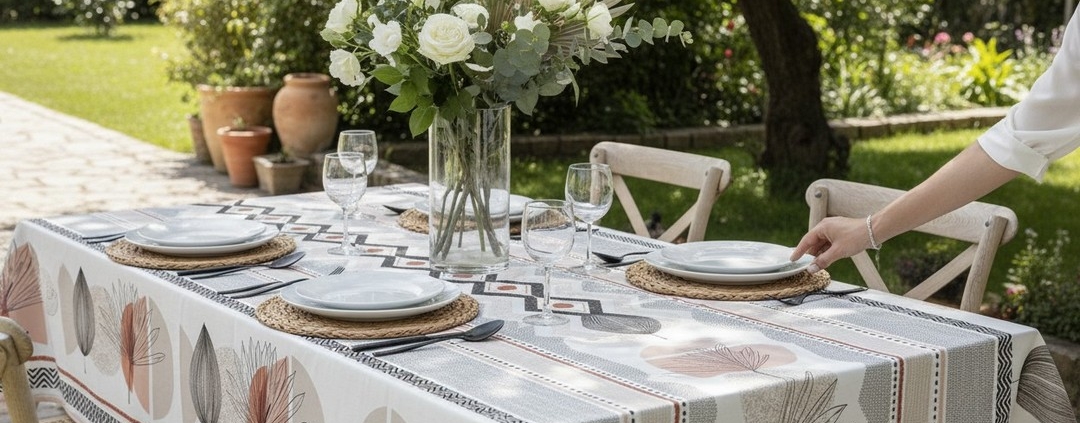 Diese modernen Tischdecken aus pflegeleichtem Polyester sind knitterarm, schnell trocknend und verbinden Stil mit Alltagstauglichkeit.