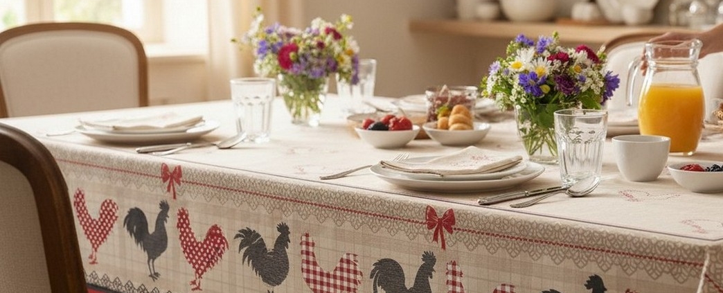 Pflegeleichte Tischdecke 150 x 300 cm HÜHNER für Haus & Garten