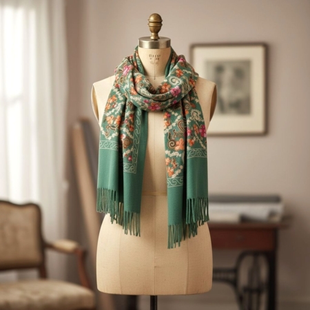 Elegante, feminine Winter Stola 70 x 200 cm mit feiner Blumenstickerei