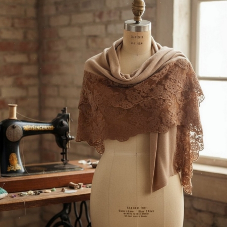 Elegante Stola CARAMEL mit französischer Spitze & Cashmere