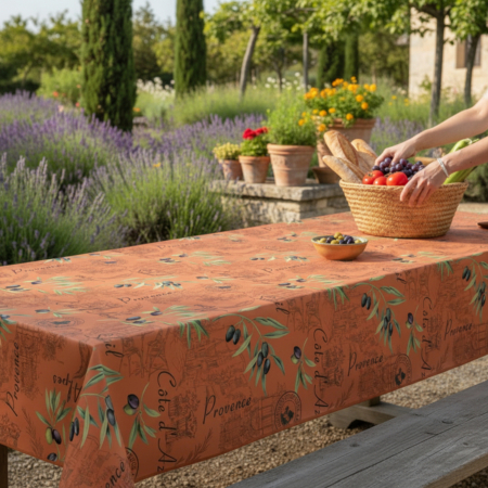 Pflegeleichte Tischdecke 150 x 300 cm OLIVEN TERRACOTTA für Haus & Garten