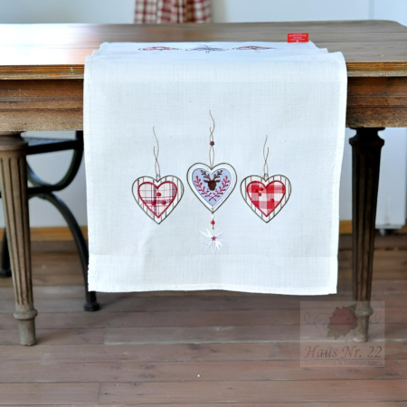 Tischläufer Landhaus Leinenoptik 40 x 90 cm mit Herzen