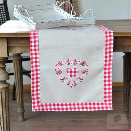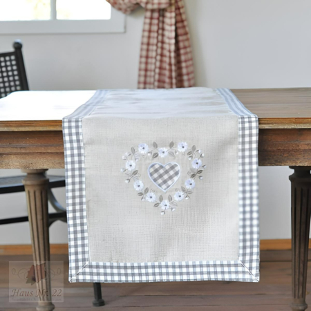 Tischläufer Landhaus Leinenoptik 40 x 170 cm mit Herzen