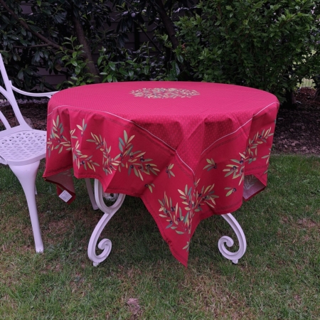 Beschichtete Baumwolle Provence Tischdecke ROT Ø 175 cm mit Olivenzweigen