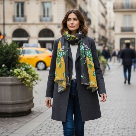 Florales Ahmaddy Damentuch 100×100 cm aus feiner Wolle