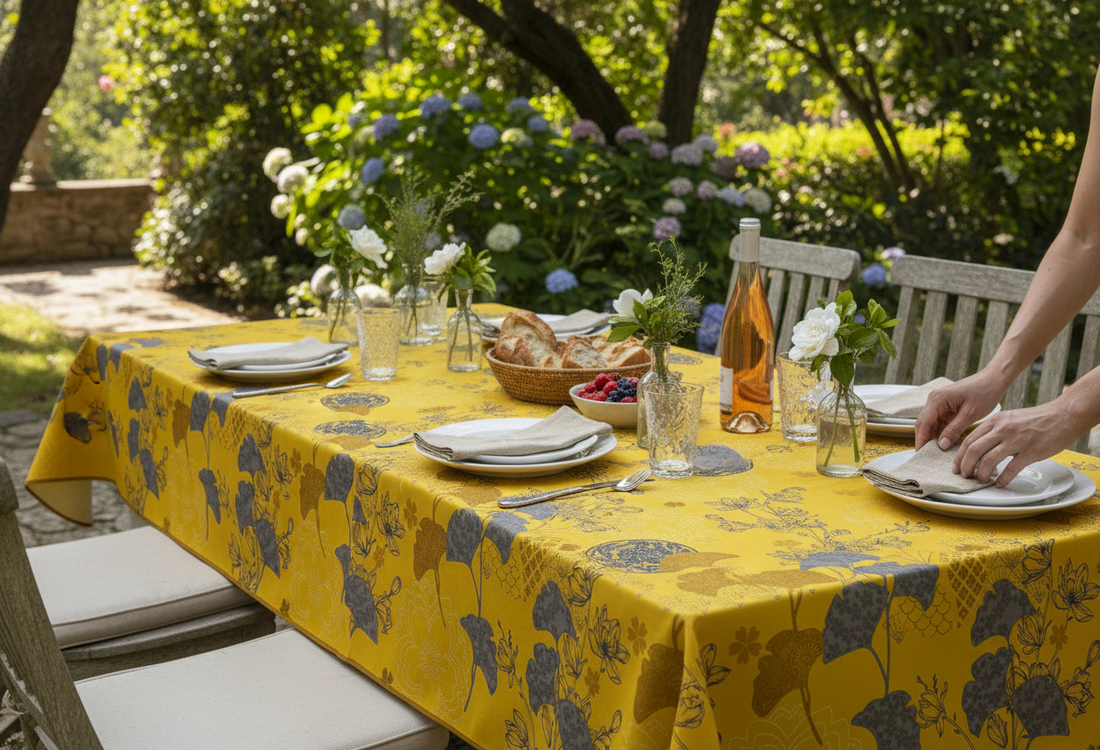 Dank der Webstruktur wirkt sie hochwertig, während die Farben lange frisch bleiben. So entsteht ein harmonischer Look für Küche, Esszimmer oder Terrasse.
