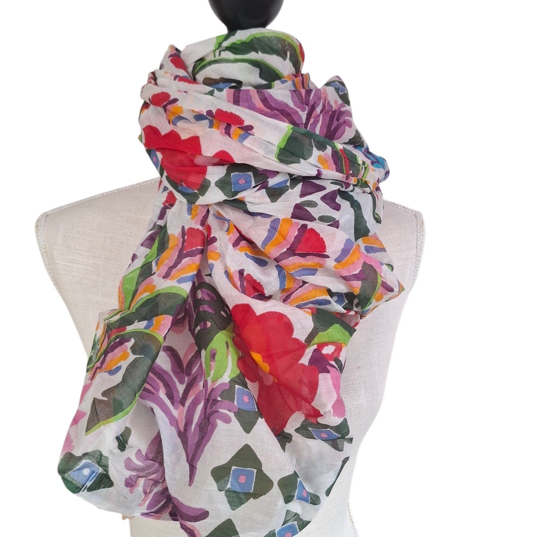 Unsere Schals sind per Hand bedruckt (Blockprint) dadurch gibt es Farbüberlagerungen, diese Überlagerungen sind keine Fehler sondern ein Zeichen von Handarbeit.